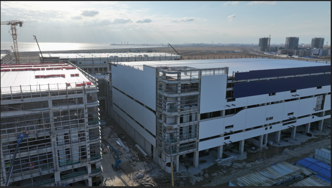 馬士基臨港旗艦倉項目位于上海市浦東新區(qū)臨港新片區(qū),地塊北側為緯15路,西側為經12路,南側為海港大道,東側臨河。地塊呈矩形,東西長約201米,南北寬約538米??偨ㄖ娣e約191745.4平方米,用地面積,113649.37平方米,為物流廠房類項目,包括:四個物流高層中轉倉庫、高架立體庫、綜合樓、1號變電所及輔助用房、2號變電所及消防泵房、三個門衛(wèi)、自行車棚及高架轉盤及裝卸平臺等單體。