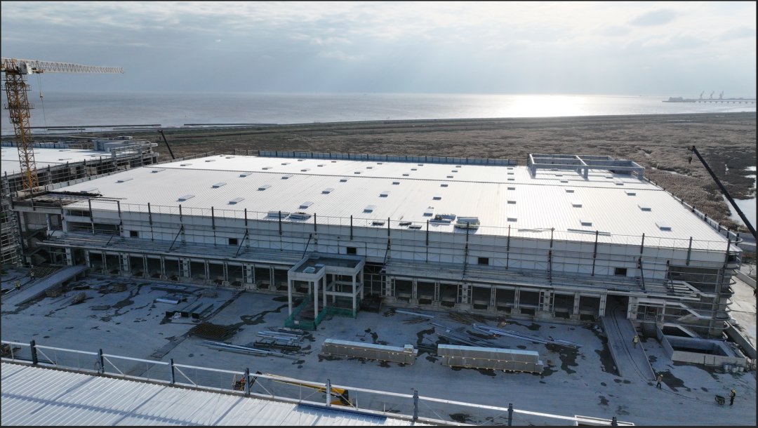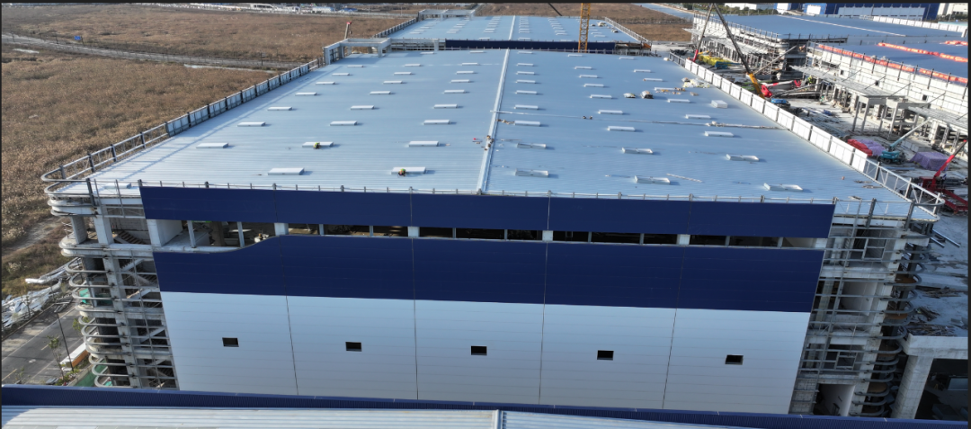 濟寧一建鋼結構工程有限公司承建的金屬屋面及維護工程,涉及1#-4#物流倉庫、高架立體庫。倉庫跨度80米,屋面標高34.1米,為雙向找坡結構。該項目建設規(guī)模大、工期緊、技術精度要求高、工況復雜,自項目開始施工。公司對現(xiàn)場管理嚴格要求,積極配合業(yè)主及總包的整體調配,施工嚴格執(zhí)行施工方案,遵循規(guī)范標準,合理安排人、機、料等,戮力同心將馬士基臨港旗艦倉項目打造成精 品工程、優(yōu) 質工程。